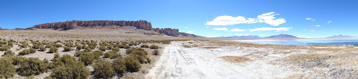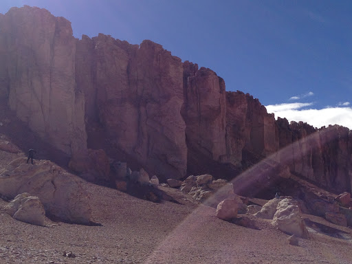 Além dos paredões, esse lugar tem também uma vista lindona do Salar de Tara ao fundo, que o objetivo final do passeio: